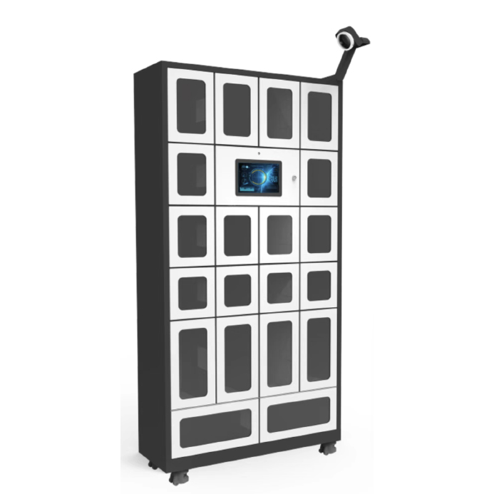 内置二个称重柜,可对内六角等成套工具进行管理;部分柜门有220V插线面板,可对电动工具进行充电。监控摄像头可以防止员工不按规矩领用。不同规格柜门可满足不同大小工具的存放。